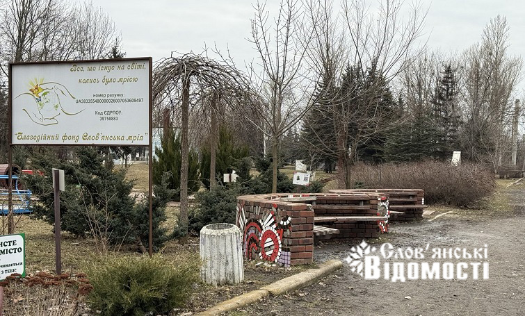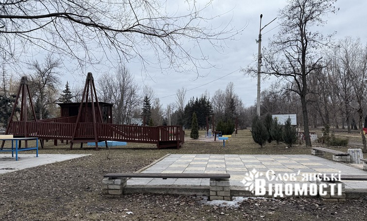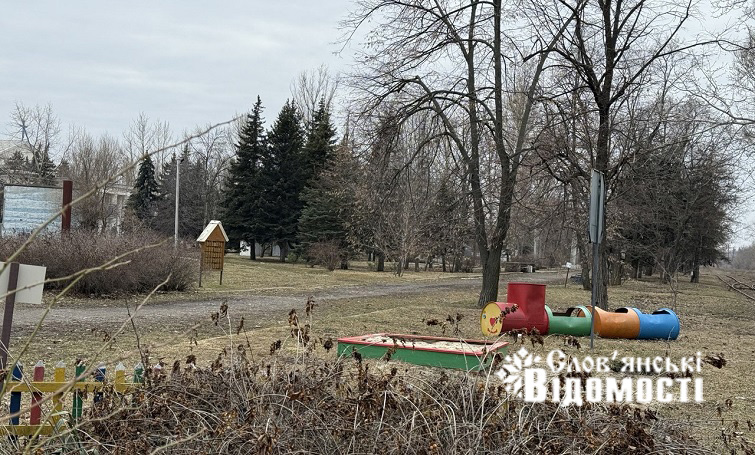 На кадрах, що зробили журналісти “Слов’янських відомостей“, видно: усе, що роками створювали тут небайдужі містяни, ніби залишилося на своїх місцях. Дитячі майданчики, гойдалки, декоративні вазони — вони стоять, як і раніше, й деякі з них виглядають пофарбованими напередодні зими. Лише подекуди помітні сліди часу й чужих рук: тріснуті лави, неохайні написи маркером, що порушують цю стриману, мовчазну гармонію.