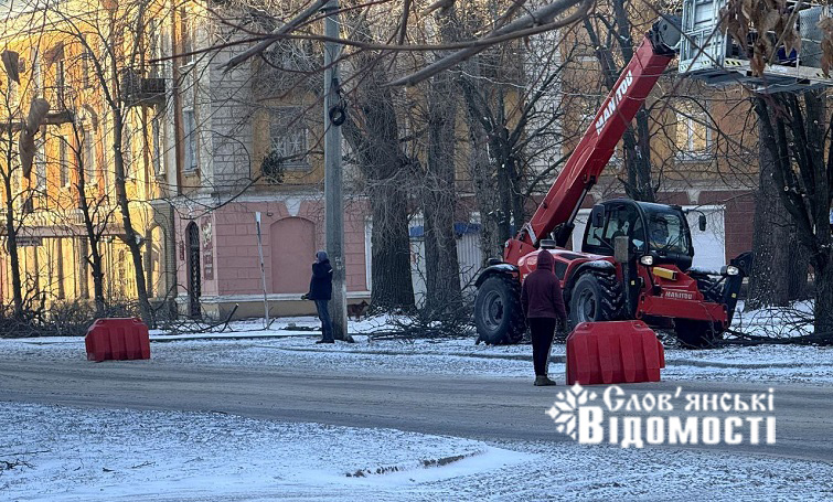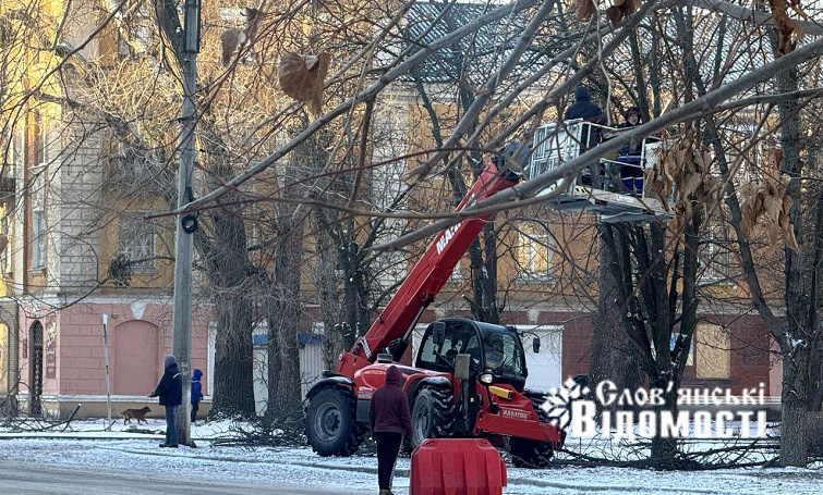 У Слов’янську, попри морози  та складні погодні умови, комунальні служби продовжують роботи з обрізання гілок дерев.