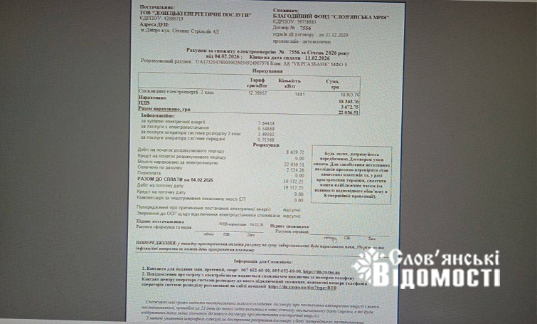 Благодійний фонд “Слов’янська Мрія” оголосив збір коштів для оплати рахунку за світло у розмірі 18 000 гривень. Ця сума накопичилася за останній місяць через активну фазу ремонтних робіт у новому молодіжному просторі.
