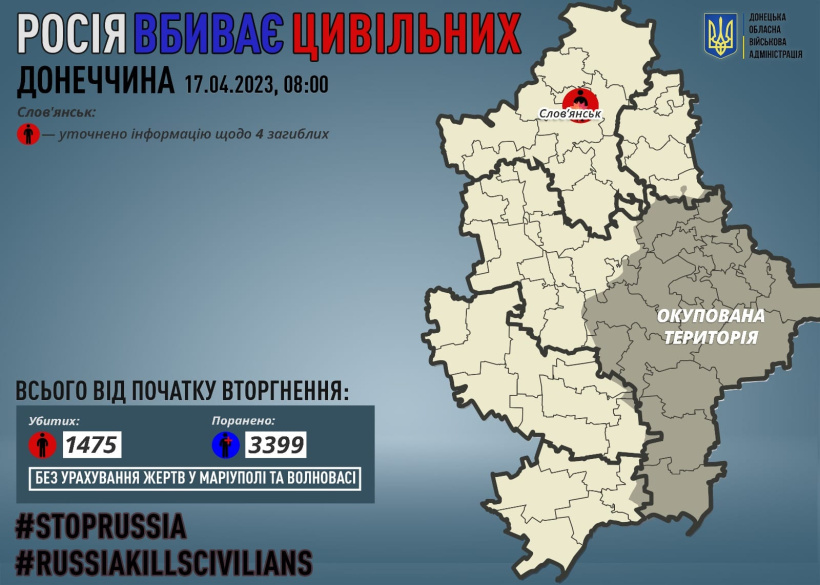 За 16 квітня вдалося встановити інформацію щодо 4 загиблих внаслідок ракетного удару по Слов’янську.