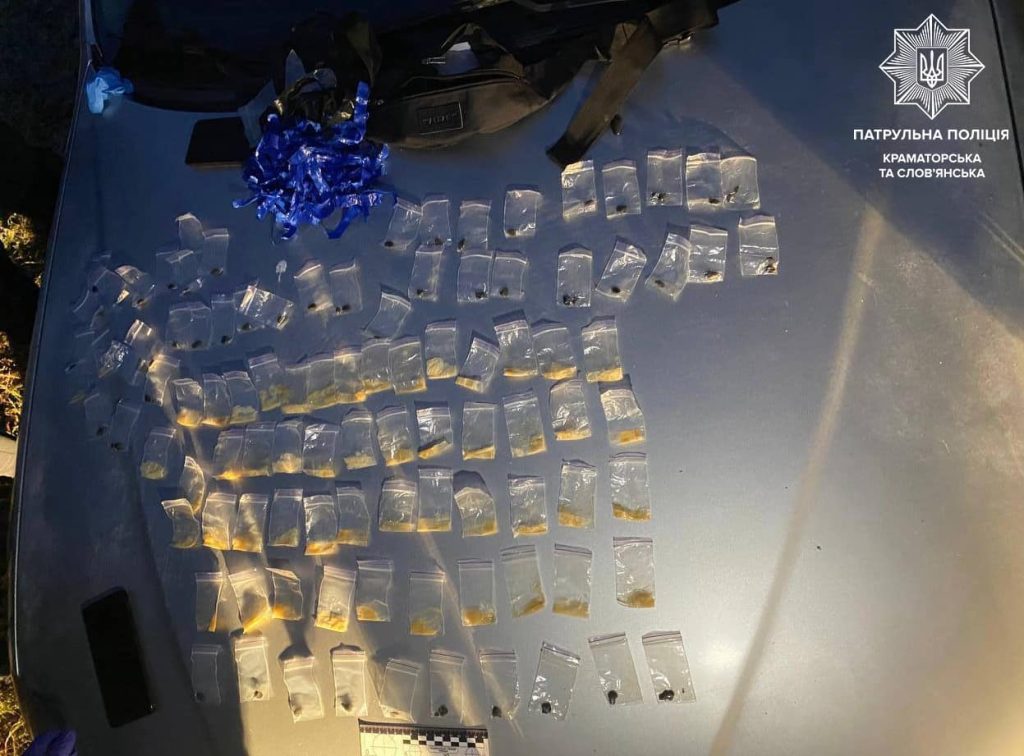 100 пакетиків з, ймовірно, наркотичними речовинами виявили патрульні у Слов’янську