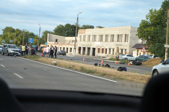 ДТП на выезде из Славянска: столкнулись мотоциклист на “Сузуки” и автомобиль “Мицубиси”