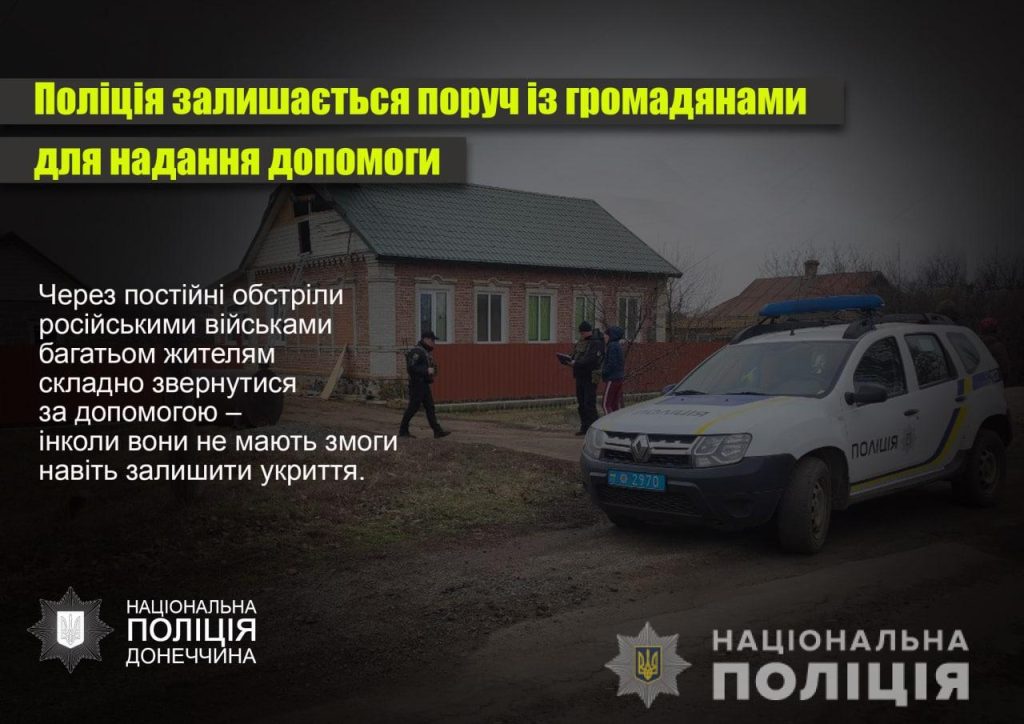 © Офіційний сайт Національної поліції: https://dn.npu.gov.ua/news/dopomoga/na-donechchini-policzejski-obxodyat-budinki-dlya-nadannya-dopomogi-lyudyam/