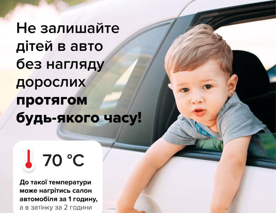 Поліція нагадує, в спекотних умовах не залишайте дітей в машині, а також домашніх улюбленців. Лише декількох хвилин, проведених в автівці за таких умов, достатньо для трагічних наслідків.