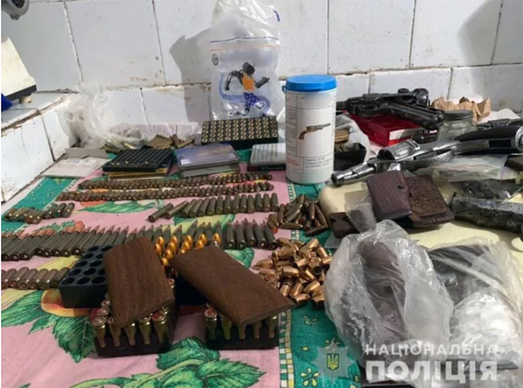 «В ході обшуку помешкання підозрюваного поліцейські виявили та вилучили 50 набоїв калібром 9 мм та ще 31 – калібром 5,45 мм, набої різного калібру у кількості 234 шт., 4 пістолети», – йдеться у повідомленні.
