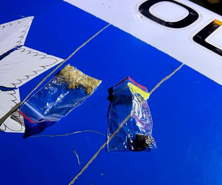 В результаті поверхневої перевірки поліцейські виявили 2 зіп-пакети. У пакетах була речовина коричневого кольору кристалічного походження та червоного кольору, схожа на наркотичну.