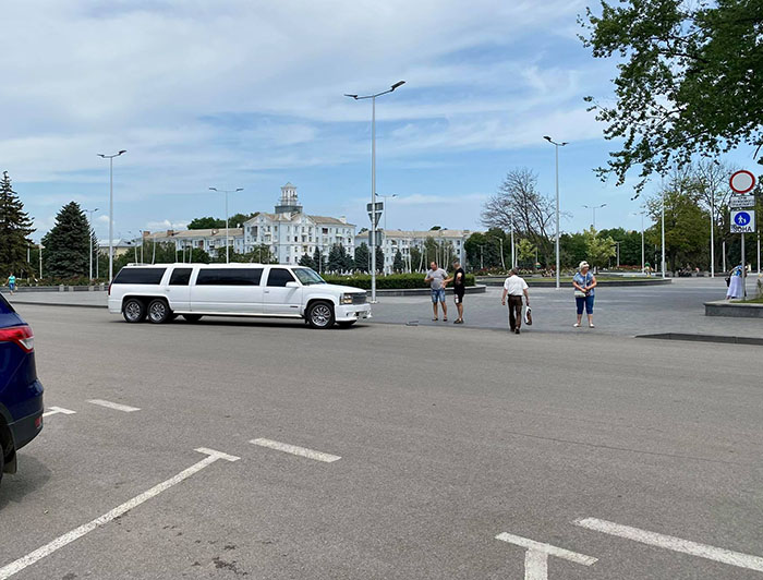По словам очевидцев, лимузин сворачивал к зданию ДКиТ НКМЗ, и “подрезал” внедорожник. ДТП обошлось без пострадавших, а вот роскошным формам автомобилей был нанесен определенный ущерб.
