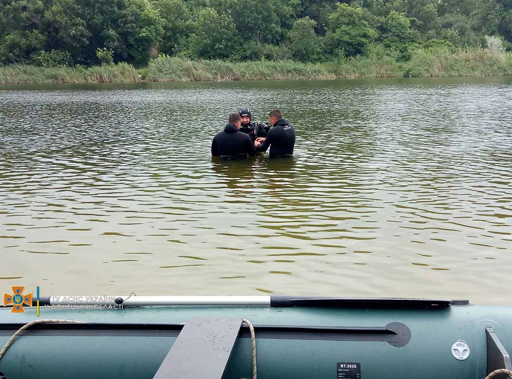 Так, протягом минулої доби, 28 червня, сталося два нещасних випадки на воді. У м. Бахмут фахівці відділенням підводного розмінування групи спеціальних піротехнічних робіт частини піротехнічних робіт та гуманітарного розмінування АРЗ СП Головного управління за допомогою водолазного спорядження шляхом занурення виявили у ставку Трубний тіло потонулого чоловіка на глибині 2 м та на відстані від берегу 20 м. Рятувальники вилучили тіло на берег та передали співробітникам Національної поліції.