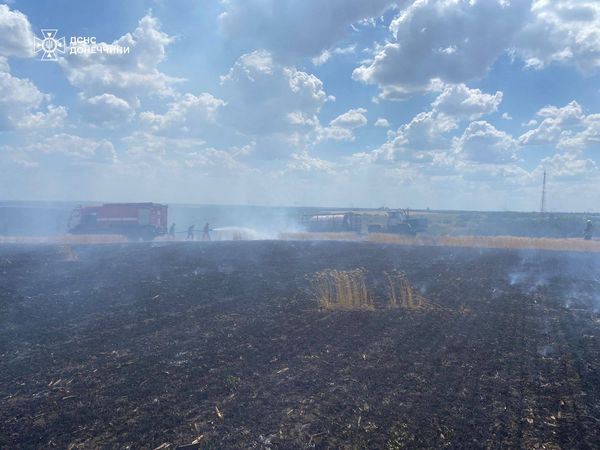 На місце події прибули рятувальники, які встановили, що відбувається горіння пшениці на корені, повідомляє Головне управління ДСНС України у Донецькій області. Надзвичайники ліквідували загоряння на площі 6 га. Завдячуючи професійній роботі рятувальників вдалося зберегти від повного знищення вогнем поле з пшеницею на площі 48 га.