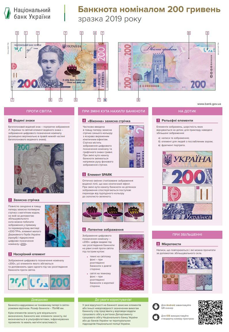 Национальный банк Украины завтра, 25 февраля, вводит в обращение обновленные банкноты номиналом 200 гривен образца 2019 года.