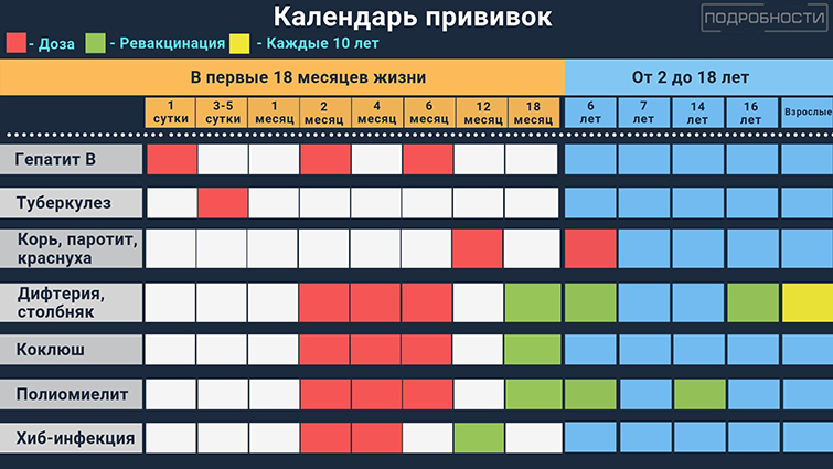 Согласно Календарю профилактических прививок 2019 предусматривается вакцинация против 10 заболеваний: