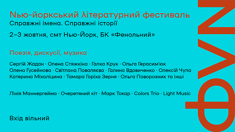 2-3 жовтня у смт. Нью-Йорк Донецької області, за кілька кілометрів від лінії фронту, вперше відбудеться Нью-йоркський літературний фестиваль (НЛФ). На поетичних читаннях, дискусіях, лекціях та концертах зберуться топові українські письменники, зокрема: Сергій Жадан, Галина Крук, Тамара Горіха Зерня, Вікторія Амеліна, Катерина Міхаліцина, Світлана Поваляєва, Олена Стяжкіна, Ольга Герасим’юк, Руслан Горовий, Галина Вдовиченко, Олена Гусейнова, Олексій Чупа, Сашко Дерманський, а львівська режисерка Ольга Поворозник зніматиме про фестиваль фільм.