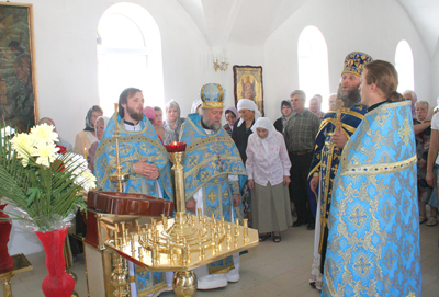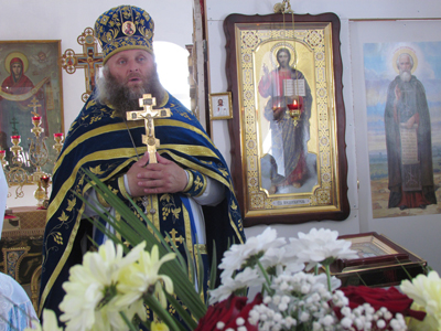 По благословению Преосвященнейшего Митрофана, епископа Горловского и Славянского, богослужение в новом храме возглавил благочинный Александро-Невского округа города Славянска протоиерей Николай Фоменко.