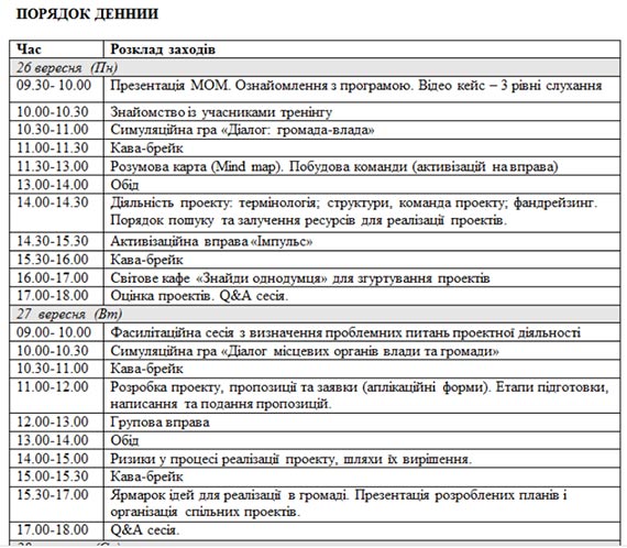 По словам Олейник, тренинг будет очень интересным и полезным для всех категорий населения города. В процессе общения с тренерами и другими участниками трехдневного курса, можно будет получить навыки по созданию и реализации собственного проекта, научиться работать с партнерами, презентовать результаты своей работы и т.п.