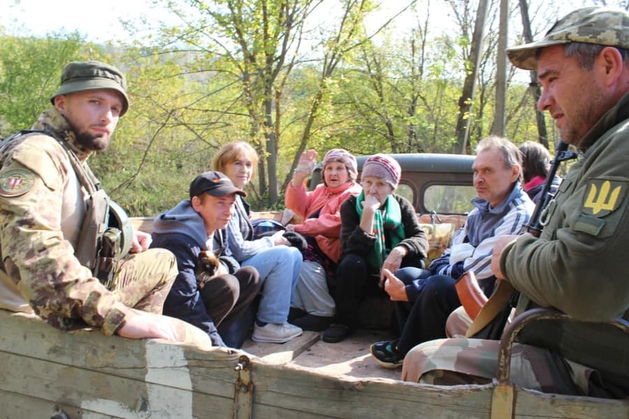 7 літніх людей і одна з них не могла пересуватись, – гвардійці евакуювали мешканців, які ховались від обстрілів у лісі Донеччини.
