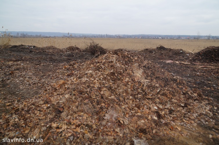 Слід зазначити, що цей майданчик сформований недалеко від ділянки землі, яку рішенням виконкому виділили під компостний центр. Туди, по заявам чиновників міської ради, планувалося звозити листя, щоб подивитися, як воно буде розпадатися. Але там, крім однієї купи сміття, більше нічого немає.