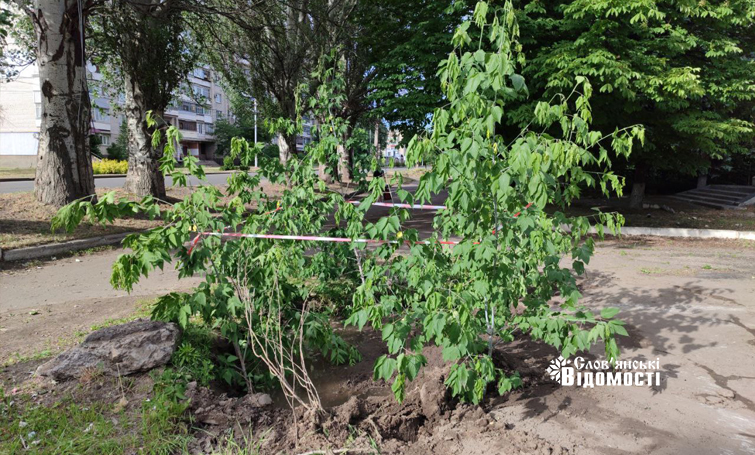 Два дні тому «Слов’янські відомості» показали глибоку калюжу біля будинку культури, яка вже кілька років не висихає. За цей час вона почала перетворюватися на справжнє болото, адже тут помітні паростки очерету і навіть оселились жаби.