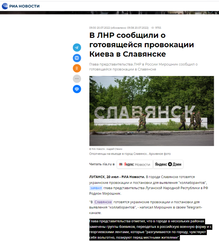 Продовжуємо улюблену тему про російську пропагандистську маячню, яка «не має аналогів». Чергову, сьогоднішню абсолютно вигадану дезінформацію про Слов’янськ, розповсюджує РИА Новости  та інші так звані ЗМІ.