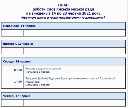 План на текущую неделю опубликован на официальном сайте Славянского городского совета.