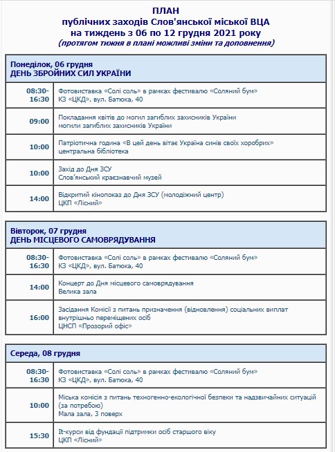 Что запланировано в Славянске с 6 по 12 декабря