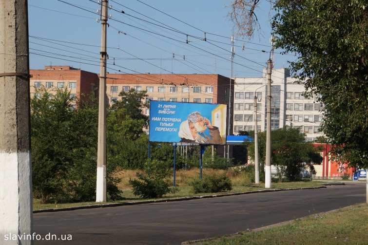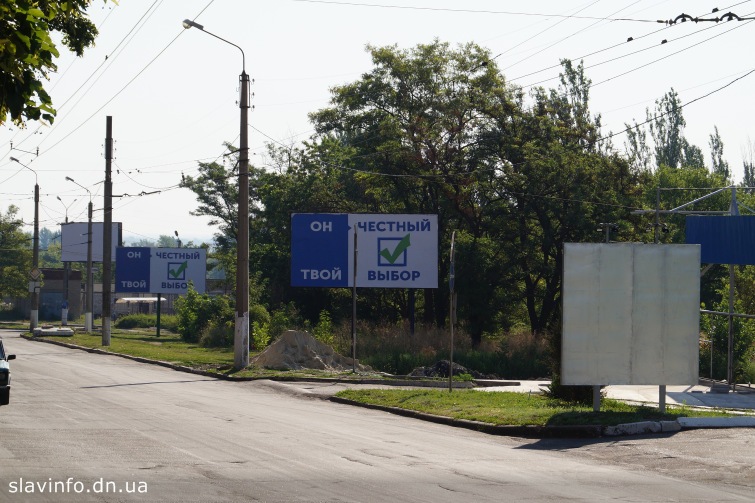З нуля годин 20 липня в Україні діє так званий режим тиші, коли заборонена будь яка політична агітація. У Слов’янську демонтували білборди з закликами голосувати за того, чи іншого кандидата або за партію. Але політична реклама залишилася на стовпах і в інших, заборонених для розміщення агітації місцях.