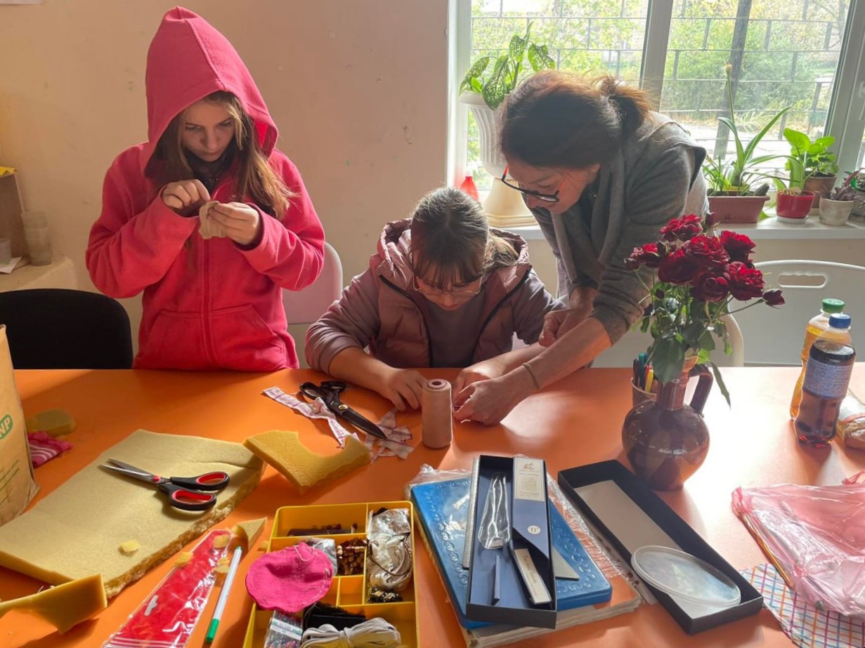 На першому занятті діти пошили для себе гольниці-подушечки. Вони обрали для себе бажані форми, викроїли, зшили та заповнили поролоном. І це було тільки початком, адже у приміщенні офісу встановлено професійне обладнання – електрична швейна машина, на якій дівчата зможуть навчатися шити. Другий урок був присвячений саме такому заняттю. Зокрема діти дізнались, як заправити машинку та строчити, а потім випробували себе на практиці.