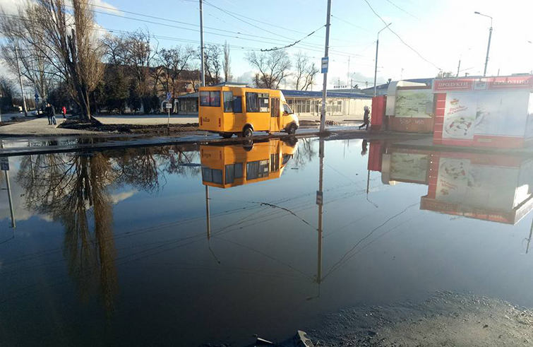 Возьмём площадь Семейко – перейти нигде невозможно, кроме как у 1-й школы, а туда тоже доплыть надо. Возле 15-й – море. Стык Чубаря – Калинина, наконец, закатали – море ( и тротуар тонет по Чубаря там же ). Стык Искры-Фрунзе у рынка – море. Люди отходят от перехода в стороны на 20-30 метров, подвергая себя опасности и нарушая правила на дороге. А сколько других мест?