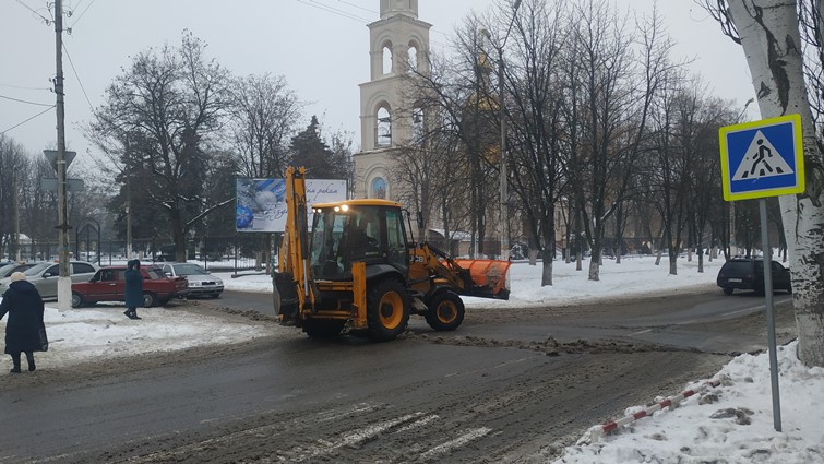 Техника убирала снег на дорогах, а люди с лопатами чистили центральную площадь.