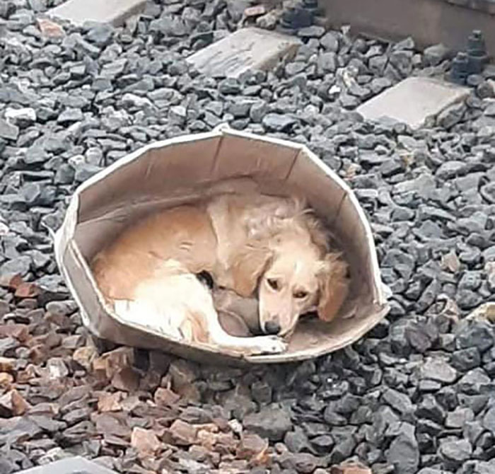 Фотофакт: в Славянске собаку и щенков выбросили между рельсами