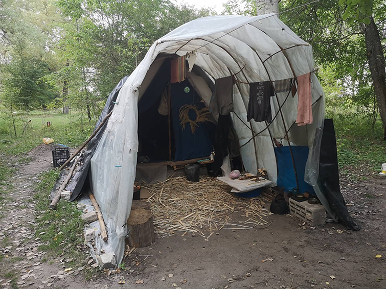 С апреля по октябрь фотограф, художник и дизайнер из Славянска Владимир Станков живет дикарем в лесу на берегу реки Оскол.