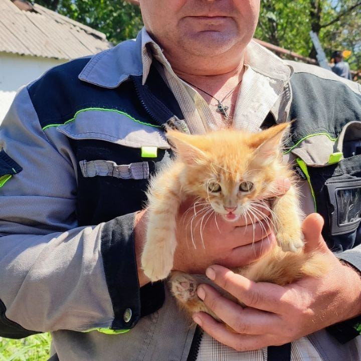 Рудого кошеня разом з мамою та іншими вухатими знайшли поблизу покинутого будинку. Власники залишили їх напризволяще. Наші майстри не могли поїхати з місця просто так, тому поділилися з чотирилапими обідом.