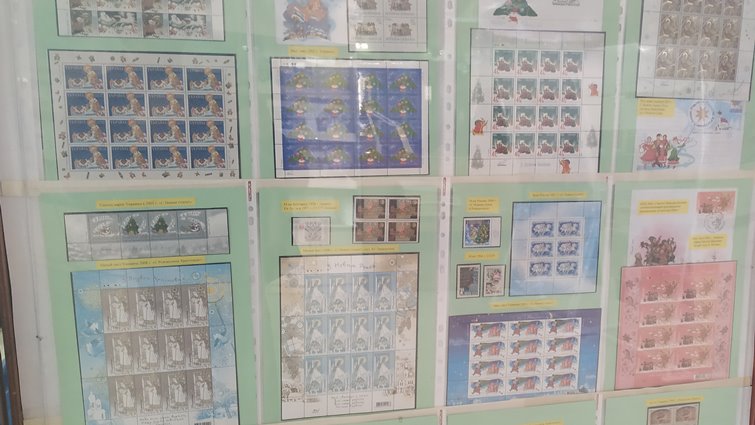 На выставке можно увидеть почтовые открытки, марки, конверты, которые использовались в разное время разными странами во время новогодних и рождественских праздников.