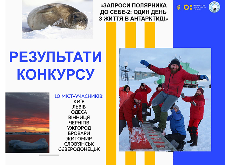 Школы-победителей посетят участники украинских антарктических экспедиций, которые расскажут детям о жизни и работе на станции “Академик Вернадский”, покажут фото и видео зимивок, а также привезут подарки. В частности, ученики узнают, как же на самом деле проходит один день жизни полярника, ведь именно это было темой второго конкурса: школьники должны были написать, как они представляют себе этот день.