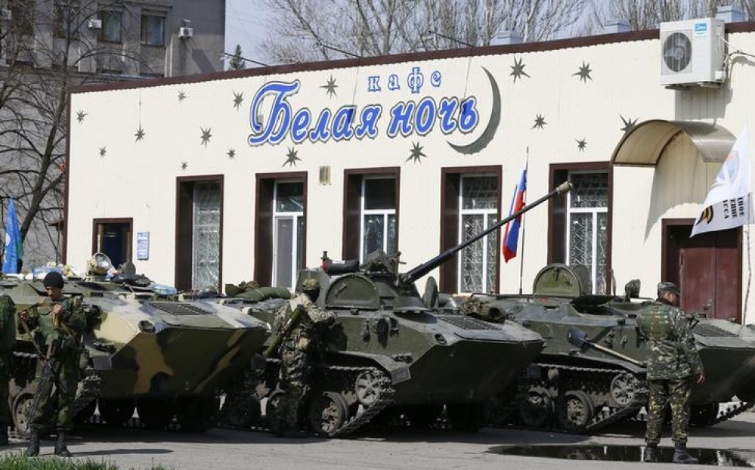 Вся захваченная техника была переправлена в Славянск и боевики выставили ее рядом с кафе «Белая ночь».