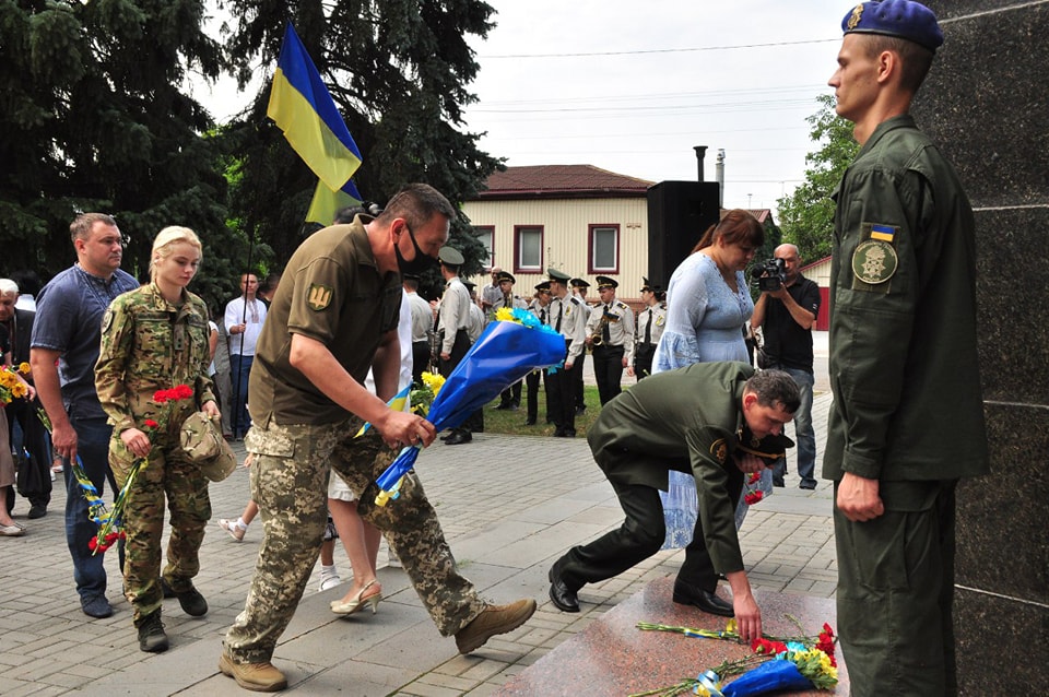 Далі бажаючі попрямували до пам’ятних знаків загиблим героям АТО/ООС. Квіти принесли до меморіальної дошки на честь загиблих нацгвардійців, що розташована на території військової частини 3035, пам’ятного знаку на вул. Центральній. Останньою зупинкою став меморіал «Блокпост №1» у селищі Мирне.