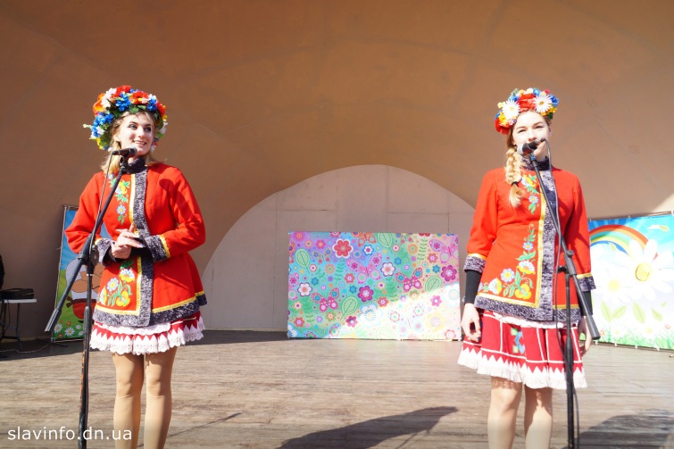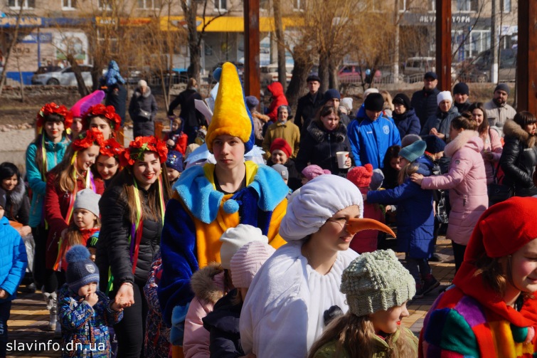 У парку Шовковичний сьогодні мешканці Слов’янська та гості міста святкують Масляну. На центральній сцені виступали творчі колективи та виконавці. На майданчику перед сценою казкові персонажі розважили дітей та дорослих.