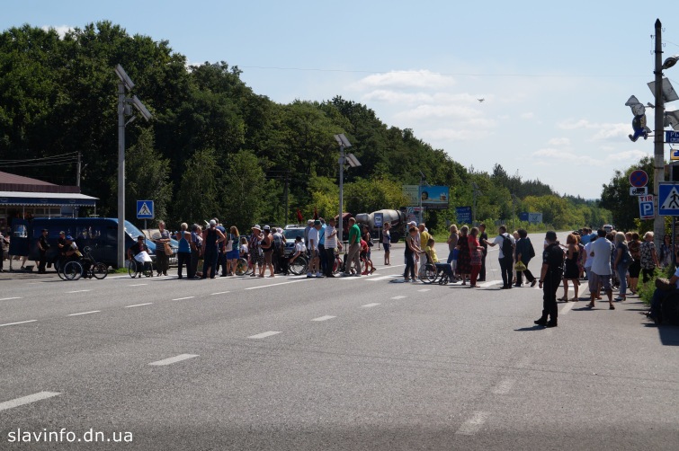 Сьогодні, 12 серпня, мешканці Слов’янська провели мирну акцію на трасі Київ-Довжанський. Вони перекрили трасу тому, що виникають проблеми з відключенням електроенергії района Славкурорт. У підприємства «Славкурорт» є багатомільйоні борги за електроенергію перед ДТЕК. Якщо ДТЕК вимикає електричний струм, без електроенергії остаються будинки звичайних мешканців. Підстанція знаходиться на території «Славкурорта» і керівництво підприємства не дає працівникам енергопостачальника допуск на цей об’єкт, щоб зробити окрему лінію на житловий сектор.