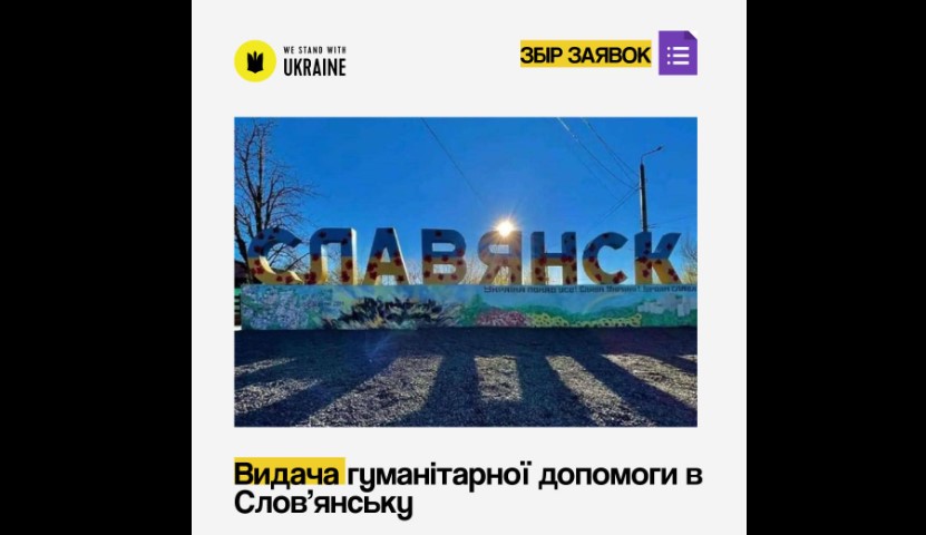 Мешканців Словʼянська та  ВПО запрошують подати заявку на гуманітарну допомогу