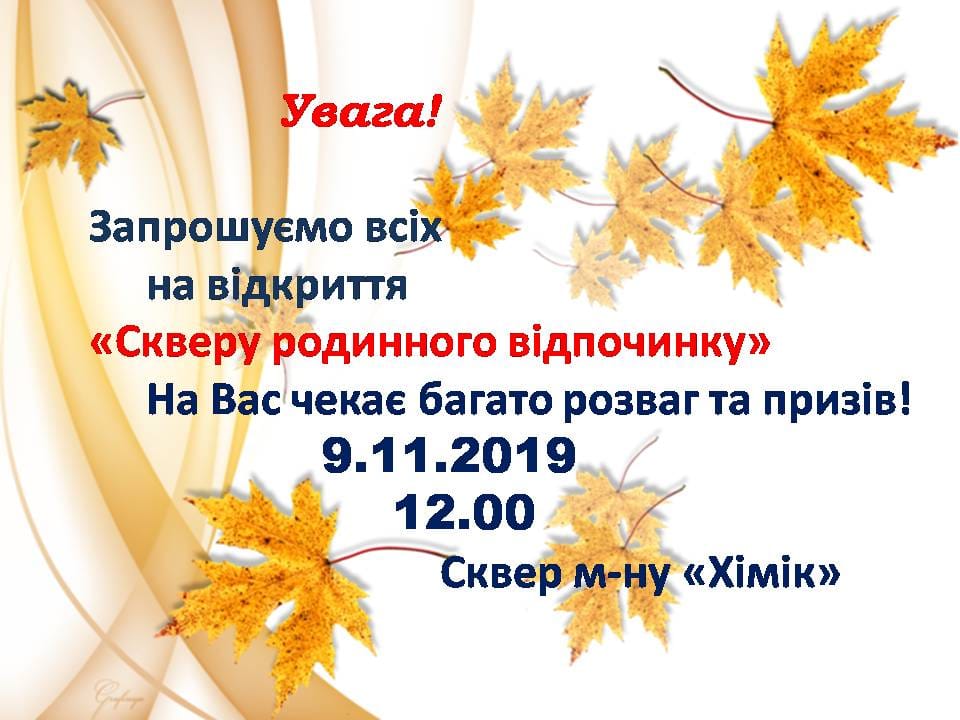 В суботу 9 листопада на Хіміку відкривається новий сквер під назвою “Сквер родинного відпочинку”.