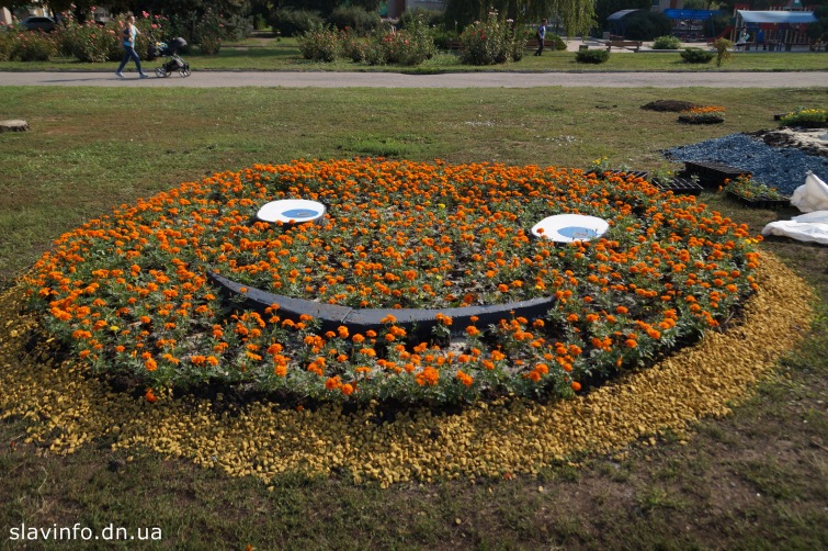 На Соборній площі Слов’янська вже з’явилися дві декоративні квіткові клумби. Спочатку з’явилася клумба у вигляді комп’ютерного смайліка, а сьогодні почали формувати нову квіткову композицію. Висаджуються однолітні квіти і тому, в наступному році, все треба буде робити знову.