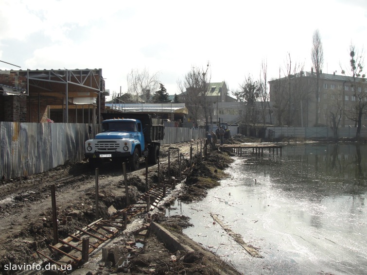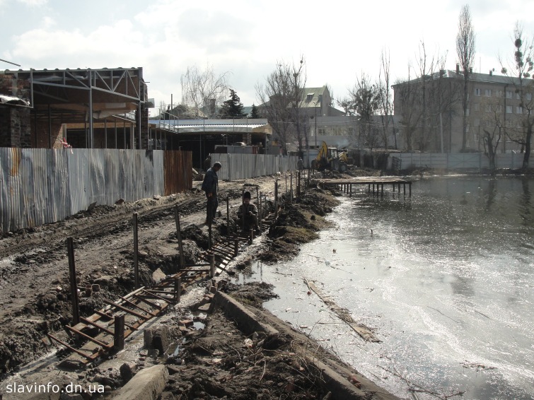 На озере, рядом с цветочным рынком начались работы по строительству набережной. Вадим Лях сказал на пресс-конференции, что эти работы выполняет не город, а делает предприниматель Александр Шуткевич.