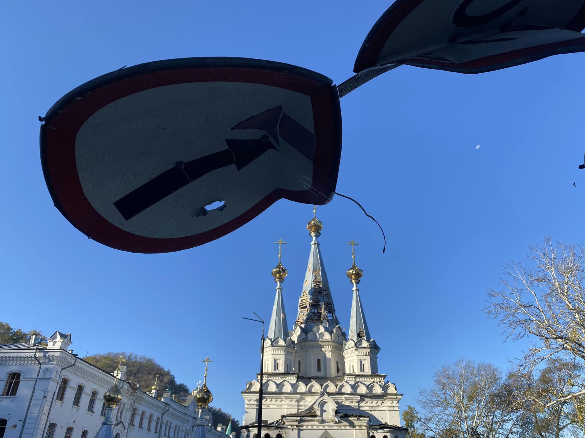 Ось так зараз виглядає пошкоджена російськими обстрілами Святогірська лавра. Фото зі Святогірська виклав журналіст Радіо Свобода Сергій Горбатенко.
