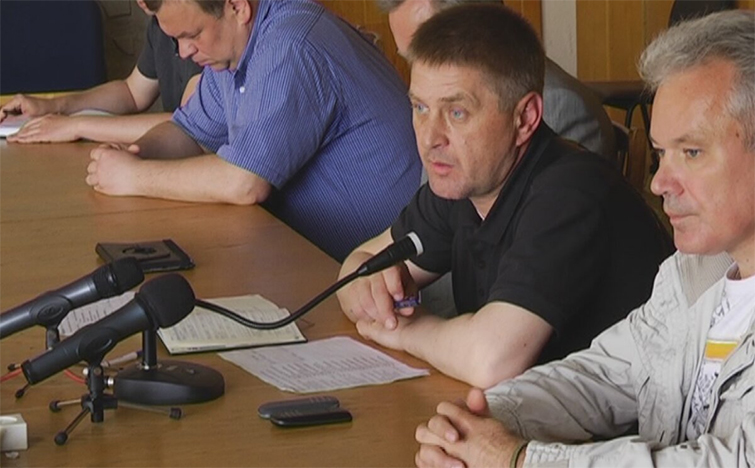 Ось відео, зняте 13 травня 2014 року, через два дні після проведення псевдореферендуму. Це апаратна нарада під керівництвом «голови виконкому» Пономарьова. Терорист вихваляється, як вони воюють з українцями. Праворуч від Пономарьова сидить Воропаєв, який пошепки підказує терористу розповісти «про результати референдуму». І далі Пономарьов вже розповідає про результати так званого «референдуму».