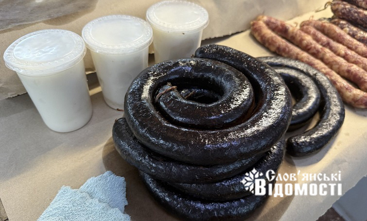 А ось і справжня зірка ринку! Самі смачні продукти – це тут, на ринку Слов’янська, і особливо це стосується сала. Такого немає ніде! Воно найсмачніше саме тут. Можна знайти на на будь-який смак: і з проріззю, і без, зі смаленою скоринкою. Є сире, солоне, копчене.
