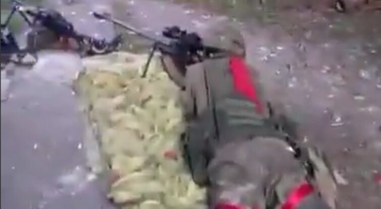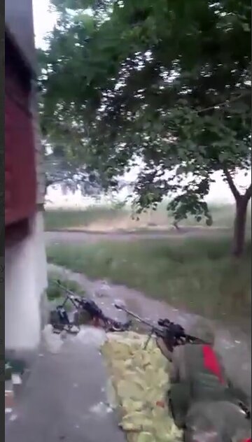 Біля однієї з таких багатоповерхівок у торці будівлі окупанти облаштували вогневу точку. Судячи з усього там облаштувався снайпер.