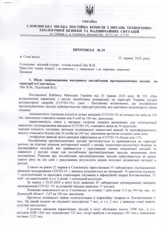 Протокол №29 Славянской городской постоянной комиссии по вопросам техногенно-экологической безопасности и чрезвычайных ситуаций опубликован на сайте Славянского городского совета.