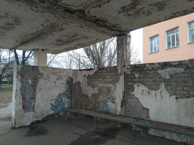 Фотографиями, на которых показано аварийное состояние остановки “Музей”  по маршруту №2, поделился в Фейсбук  Кудиненко Илья
