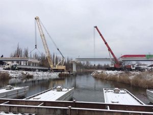 На взорванном мосту возле Семеновки завершили установку опор и начали укладывать плиты