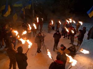 Факелы на улицах Славянска в честь дня рождения Степана Бандеры. Фото. Видео