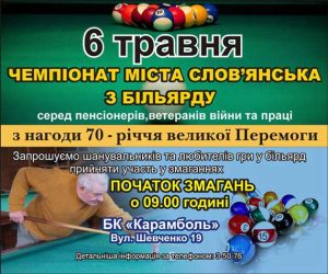 В Славянске пройдет Чемпионат города по бильярду среди пенсионеров и ветеранов